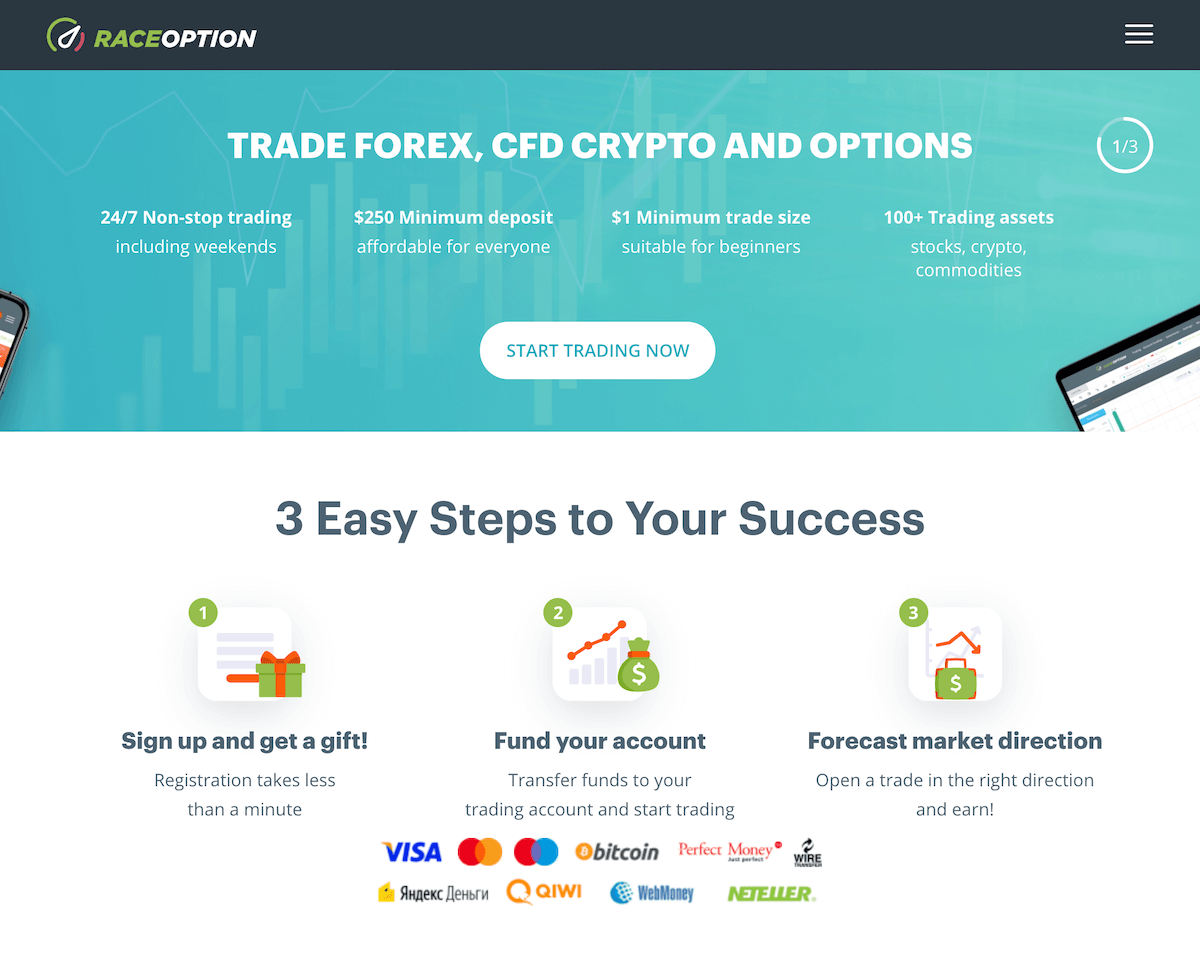 RaceOption offers a vast array of 150+ binary possessions across foreign exchange, supplies, assets, indices and cryptos, which gives plenty of trading opportunities for novices and skilled investors.